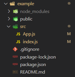src 폴더 내에 있는 파일 중 App.js, index.js를 제외하고 다른 파일들은 모두 지운다.